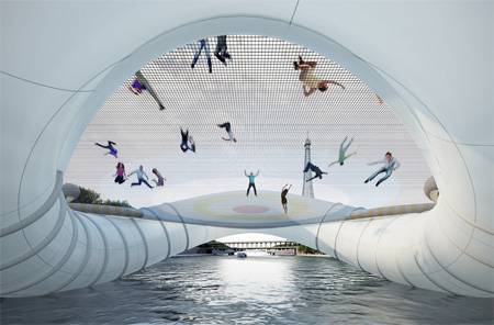Paris'te yapılması planlanan trambolin köprü projesi.