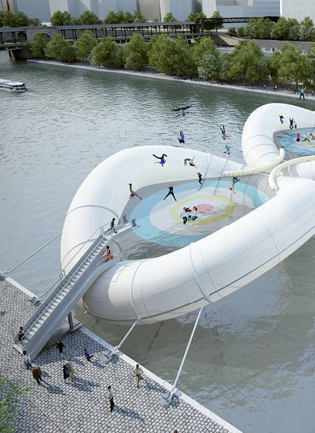AZC firması tarafından dizayn edilen köprü insanların karşıdan karşıya eğlenceli bir şekilde geçmesini sağlayacak. Proje onaylandığında yayaların hizmetine sunulacak. Yayalar böylelikle Sen Nehri'nin üzerinden karşıya zıplayarak geçebilecekler.