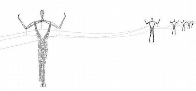Choi+Shine Mimarlık tarafından "Devler Ülkesi" adı altında tasarlanan bu dev insan figürleri aslında yüksek gerilim hattı direği. Figürler çevreyle uyumlu şekilde, duruş değiştirebiliyor. Örneğin; elektrik hatları yükseğe çıkarken, direkler de tırmanış pozisyonu alan bir insan görünümünde yapılandırılabiliyor.