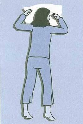 Pozisyon: Midenin üzerinde, eller başın üstünde ve yastığın etrafında ,başınız da sağ ya da sol yana dönük yatış pozisyonu.