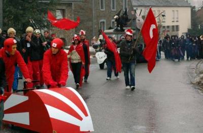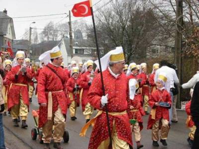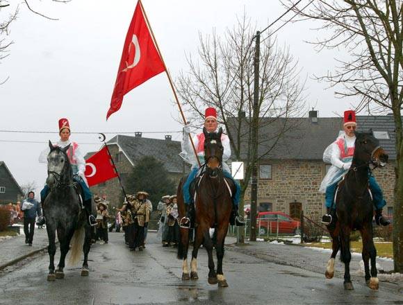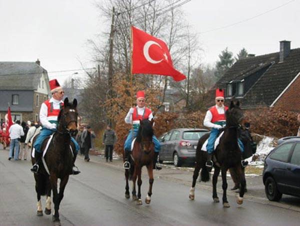 Kendilerini asırlardır "Türk" olarak adlandıran Belçikalı köylüler, geleneksel olarak Türk giysi ve bayraklarıyla karnaval korteji oluşturdular