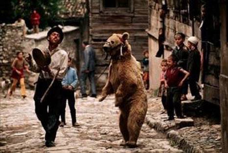 Çingenelerin tekelindeki bu meslek grubunda ekip, elinde tef ve uzunca bir sopa olan kavruk bir çingene ile, beline sardığı zincirin ucu, burnuna geçirilen halkaya takılmış bir ayıdan oluşmaktaydı. Daha çok turistik yerler ve sokak aralarında boy gösteren bu ikili ekibin gösterisi, tefi dokuz-sekizlik aksak bir ritmle çalarak şarkı söyleyen çingenenin, arada bir elindeki sopayla ayıyı dürtmesinden sonra hayvanın tempoya uygun hareketlerle zıplaması, sopaya tutunarak iki ayağının üzerinde dikilmesi ve bazen de yere yatarak bayılma numarası yapmasından oluşan ilginç bir şovdan ibaretti. En çok tutulan gösteri ise; “Kocaoğlan, hamamda karılar nasıl bayılır?” sorusunun ardından ayının bayılma numarası yapmasıydı. Gösteri bitince çingene kasketini çıkararak, etraflarında halka olan seyircilerden bahşiş toplardı. 1980’lerde ayı oynatmak kesinlikle yasaklandı. Hayvanlar toplanarak, Uludağ’da oluşturulan ayı yetiştirme ve rehabilitasyon merkezine götürüldüler.