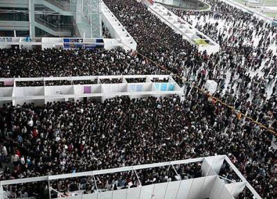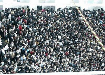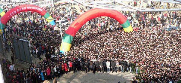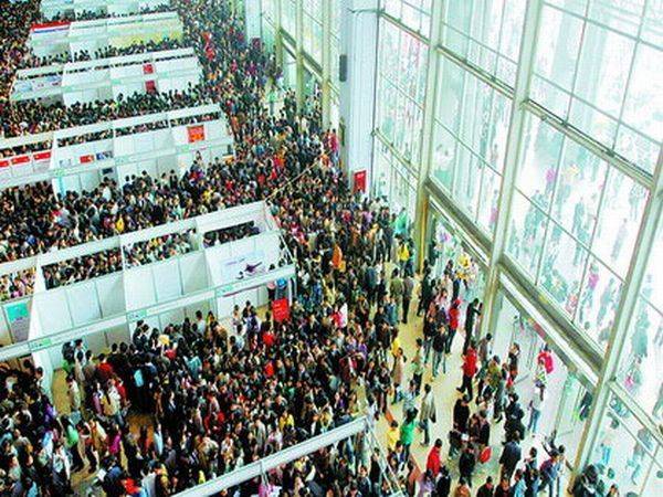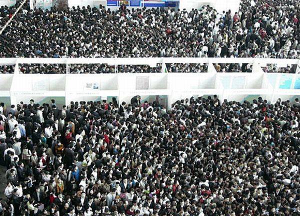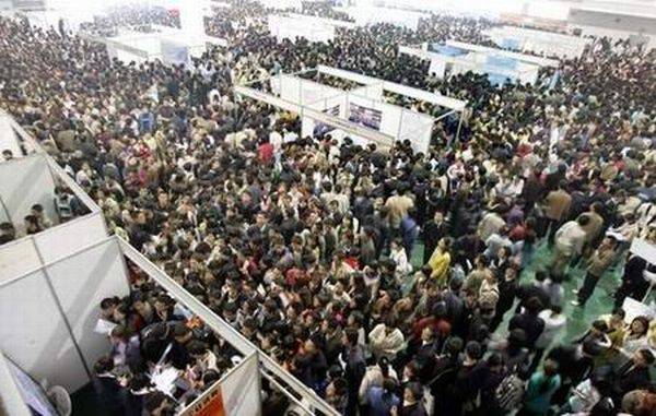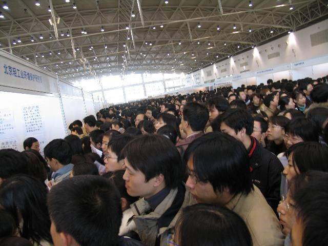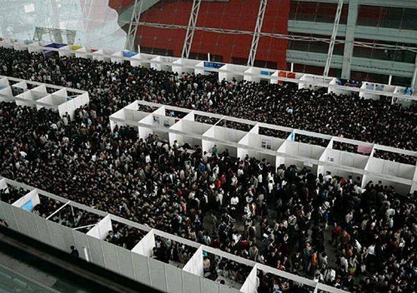 Çin'de iş verenler ve iş arayanları bir araya getiren bir meslek fuarında yaşanan izdihamdan kareler...