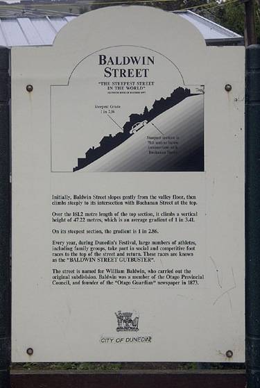 Yeni Zelanda'da bulunan Baldwin Caddesi, dünyanın en dik caddelerinden biri. 350 metre uzunluğundaki cadde önce hafif bir eğimle başlıyor ve sonunda 19 derece eğime ulaşıyor.