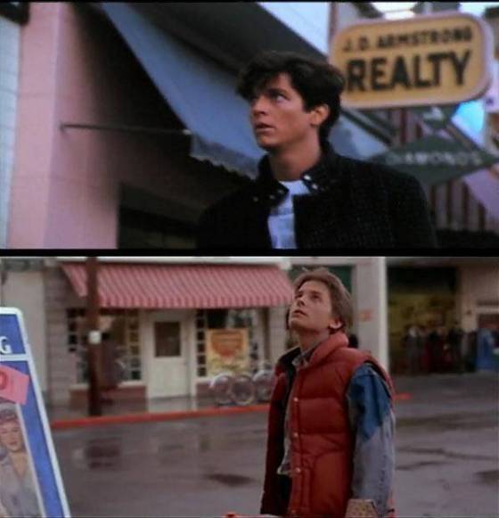 Marty McFly rolü için ilk başta Eric Stoltz düşünülüyordu. Fakat yönetmen Robert Zemeckis, 40 saatlik bir çekimin ardından oyuncu değişikliği yapmaya karar verdi ve o ana kadar çekilmiş tüm sahneler Michael J. Fox ile yeni baştan çekildi. İşte aynı sahne için karşılaştırmalı fotoğraflar: