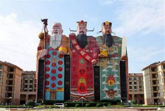 Tapınak gibi gözüken bu yapıdaki üç heykel, iyi şans, bolluk ve uzun ömrü simgeleyen Fu, Lu ve Shou isimli 3 tanrıyı betimliyor. Otelin giriş kapısı uzun yaşamın simgesi olan beyaz sakallı Shou'nun sağ ayağında bulunuyor. Elinde tuttuğu şeftali ise, aslında bir süit oda...