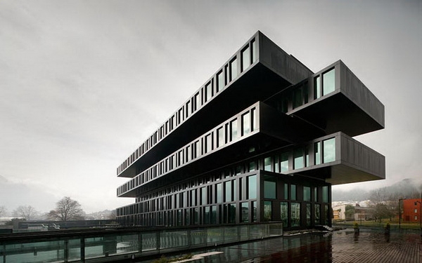 Modern bir mimari örneği olan yapı, rastgele üst üste yığılmış katlardan oluşuyor izlenimi veriyor.