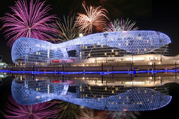 Başkent Abu Dabi'de bulunan bu 5 yıldızlı otel iki binadan oluşuyor. Mimariyi ilginç kılan ise, iki yapı birbirine ızgaralı bir kabuk şeklini andıran ışıklandırılmış bir çatı ile bağlanıyor.
