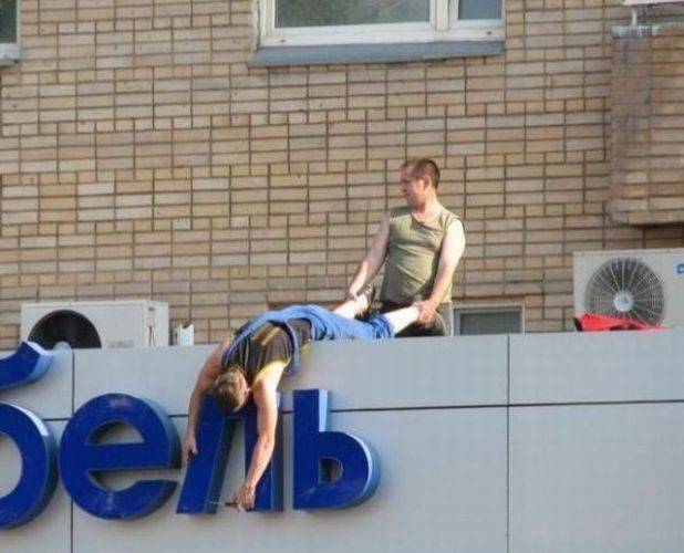 İş güvenliği olmadan çalışanlar veya kendilerini akrobat zannedenler...