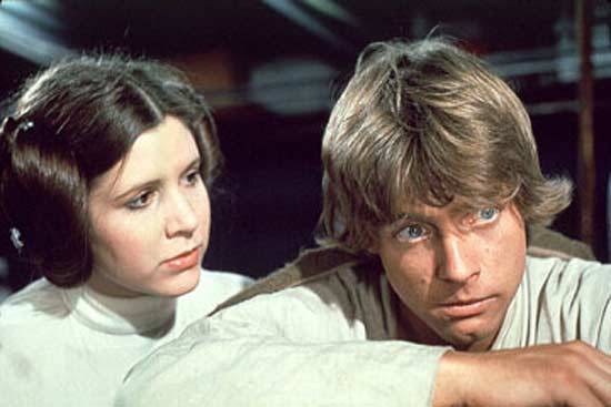 Efsane seri Star Wars'un aşıkları Luke ve Leila... Ünlü serinin yaratıcısı George Lucas, oyuncuları ise Mark Hamill, Harrison Ford ve Carrie Fisher.