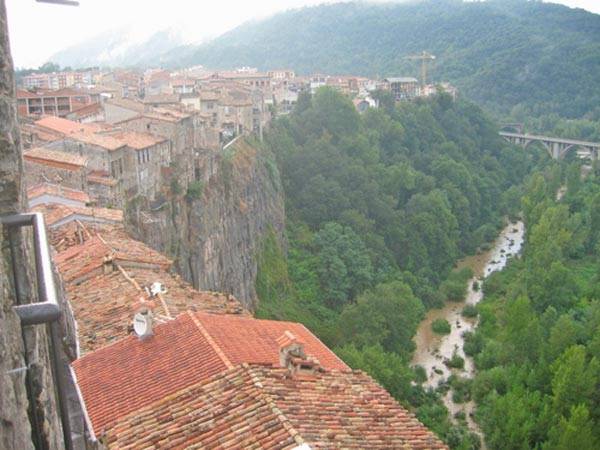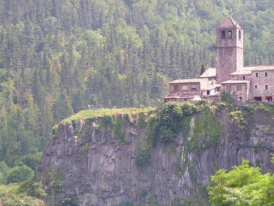 50 Metre Yükseklikte Bazalt Kayalıkların Üzerinde İspanya, Katalonya'daki Castelfolit de la Roca bölgesinin sınırı Fluvia ve Toronell nehirlerinin birleşmesi ile oluşuyor.
